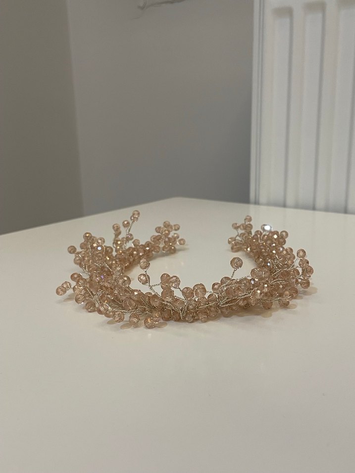 Bu çağdaş bej saç aksesuarı, hafif cam boncuklarla süslenmiş ve modaya uygun trendsetterlar için şık bir tasarıma sahiptir. ✨