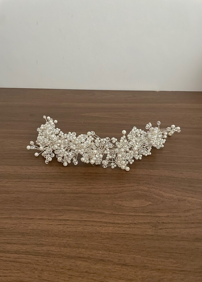 gelin tacı boncuğu gelinlik fotoğraflarında basımda duruşu vardır iki türlü boncuk karıştırarak yapılmıştır ince değildir