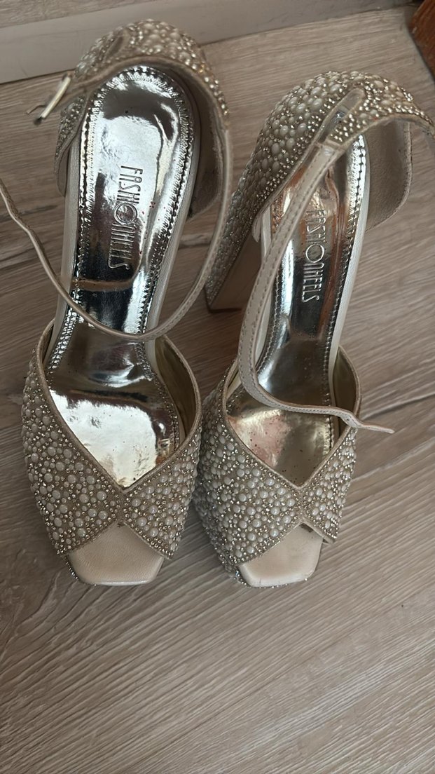 Düğünlere uygun, beyaz işlemeli ve payetli detaylara sahip, modern klasik tarzda yüksek topuklu kadın ayakkabısı. Parlak yüzeyli ve kauçuk tabanlı.Ürün Sıfırdan Farksızdır alan kişiye Hayırlı Olsun