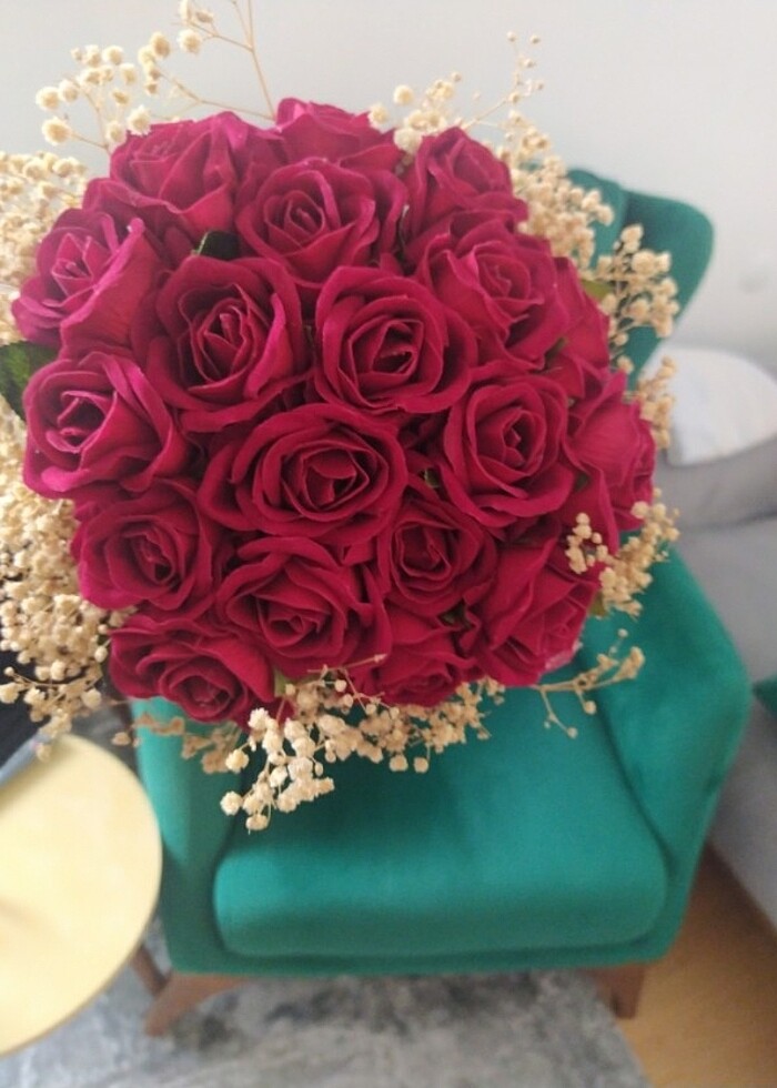Gülleri çok güzel ve kalite 19 adet gül bulunmaktadir bordo koyu kırmızı renktedir