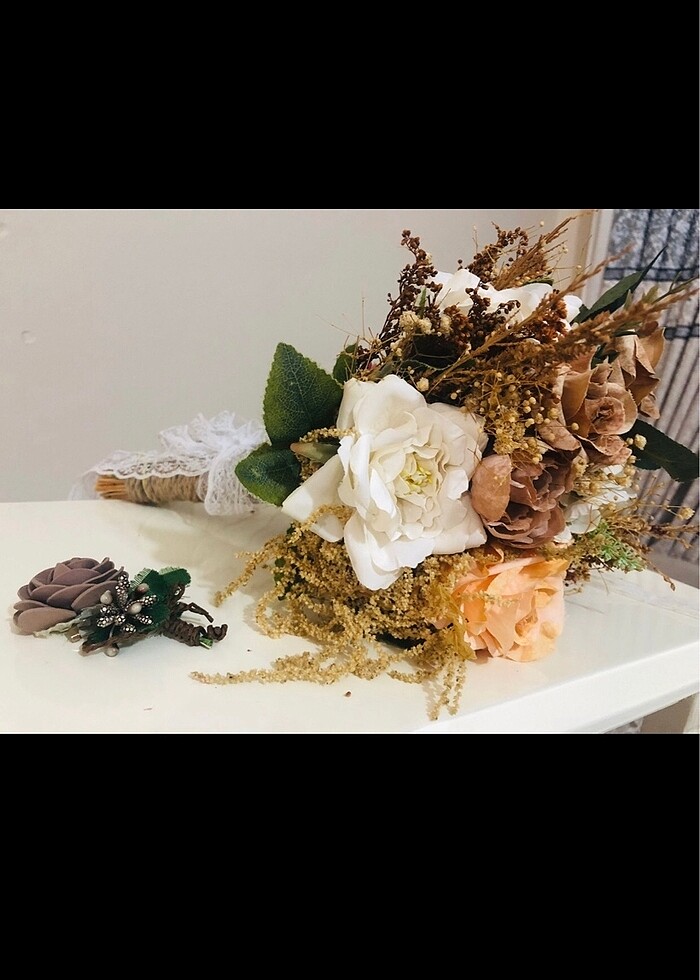 Ürün sadece bir kez kullanıldı,Damat yaka çiçeğiyle beraber set halinde gönderilecektir.