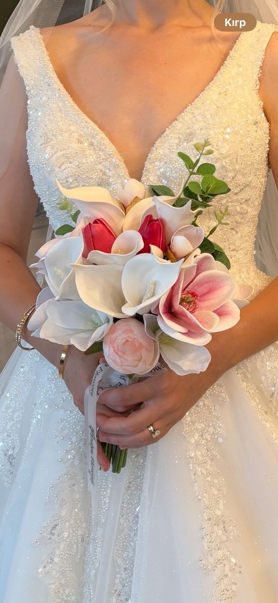 gelin buketi, zarif çiçek karışımıyla klasik ve bohem Paris tarzını yansıtıyor. El yapımıdır, istenilen şekilde yapılır, görsel yaplaşılması yeterli