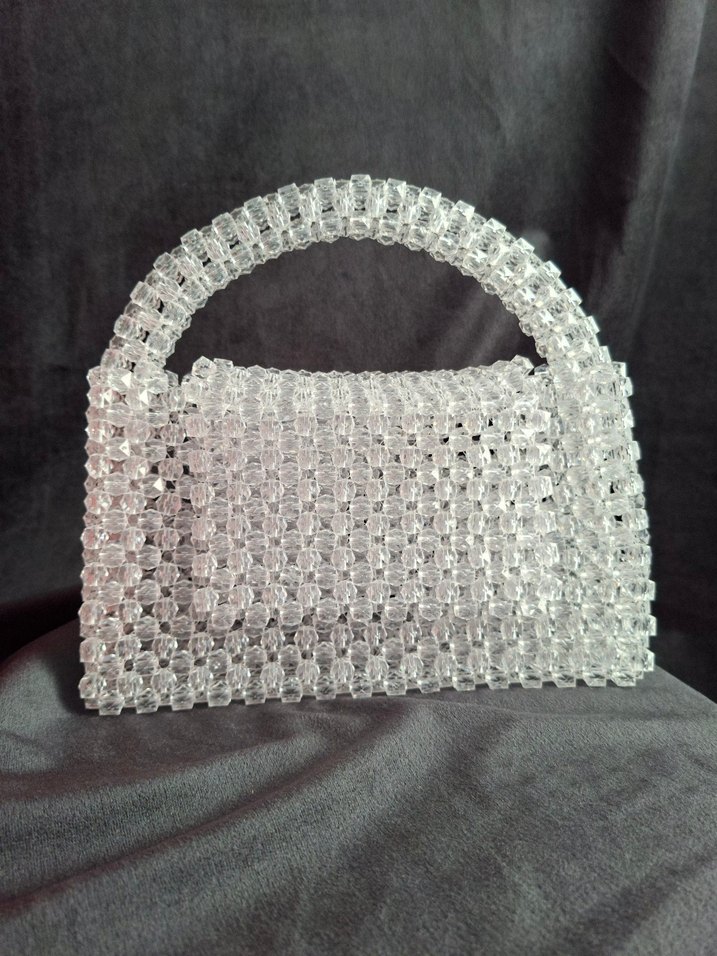 Beyaz renkte, kristal akrilik boncuklardan yapılmıştir..
