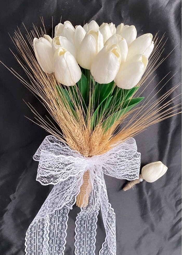 Sıfır ürün, hiç kullanılmadı. Başka bir çiçek tercih ettiğimden ötürü bunu kullanamadım. Damat çiçeği de yanında.