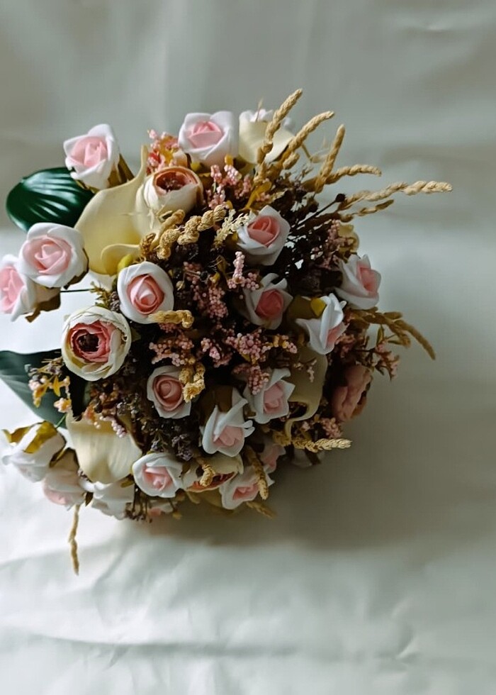 Dopdolu özel tasarlanmış gelin çiçeği arajmanı.