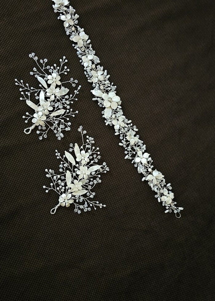 Gelin nikah söz nişan saç aksesuarı kırık beyaz hıc kullanılmadı 3 parça olarak gönderilecektir.iade kabul edılmez