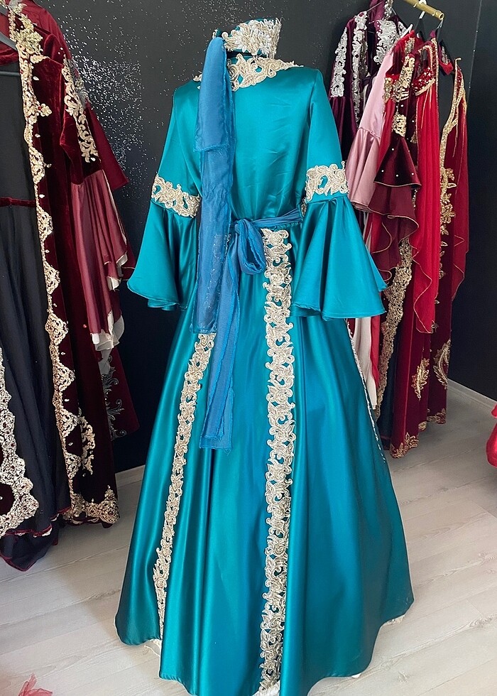 Gelin kaftanı turkuaz renk