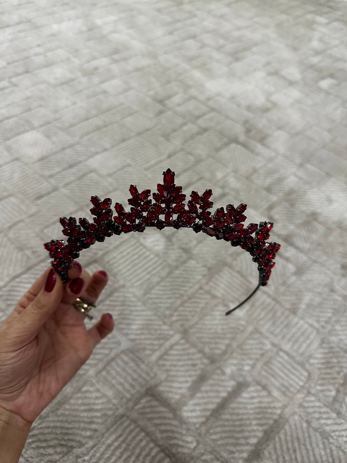 Kırmızı kına tacı çok zarif duruyor