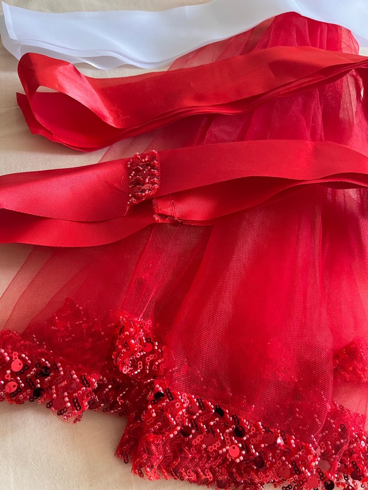 Kına gecesi için aldık. Kına organizasyonunun zaten örtüsü olduğu için boştan yere almışız kullanılmadı. 1000₺ gibi de bir para verdik. Gelin kusağı, gelin-damat takı kurdelası ve gelin örtüsü bir arada.