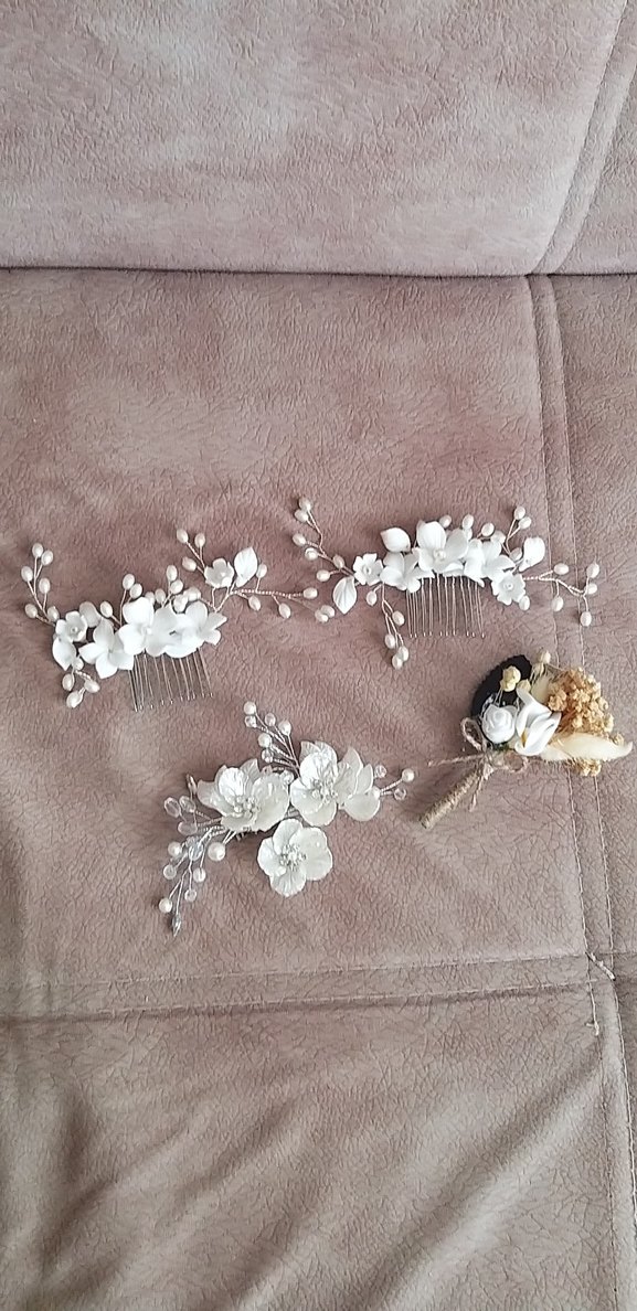 2 ADET TARAKLI 1 ADET mandallı GELİN TOKASI DAMAT YAKA ÇİÇEĞİ kesinlikle bir kere kullanıldı hasarsız İncili ve kristal taşlı Beyaz boncuklu, örgü detaylı bohem tarzda, minimalist ve klasik zarafette saç aksesuarları seti.
