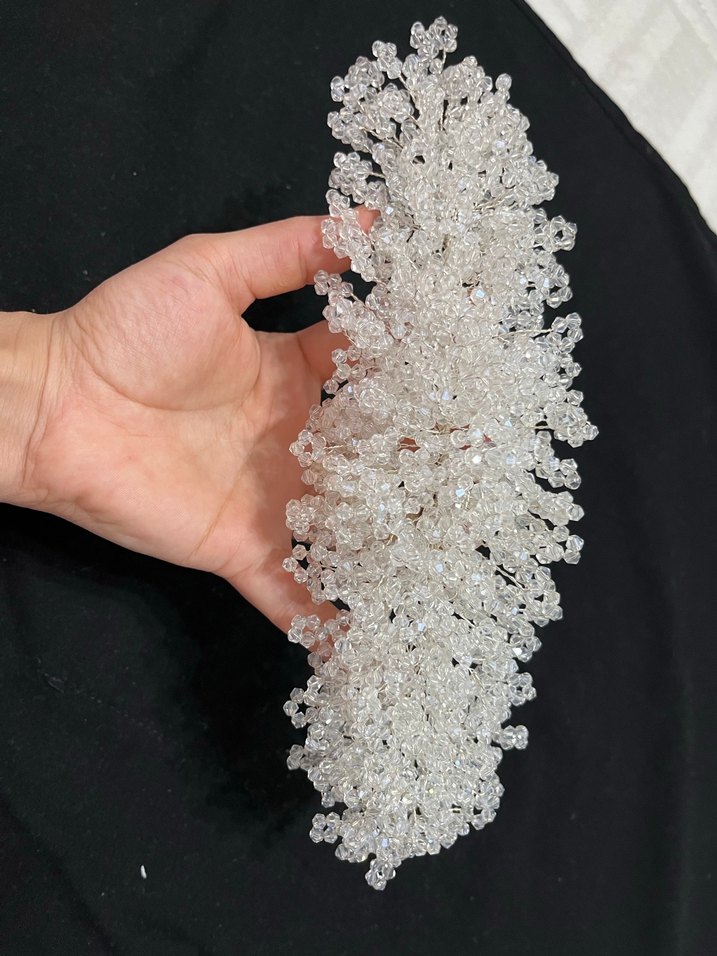 Beyaz renkli boncuk detaylı şık bir taç. Özel günlerde kombinlerinizi tamamlayacak bir aksesuardır. Düğünümde kullandım hiçbir kusuru dökülen boncuğu yoktur