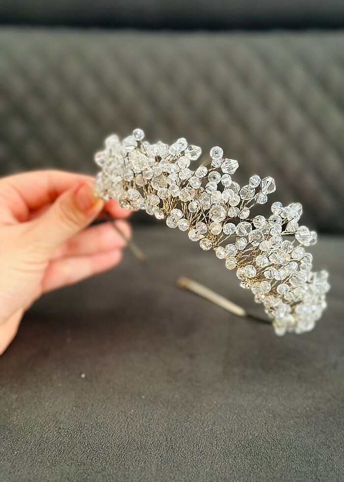 Gelinliğimle birlikte takım yaptırmıştım. Düğünde başka bir taç kullandığım için bu hiç kullanılmadı.