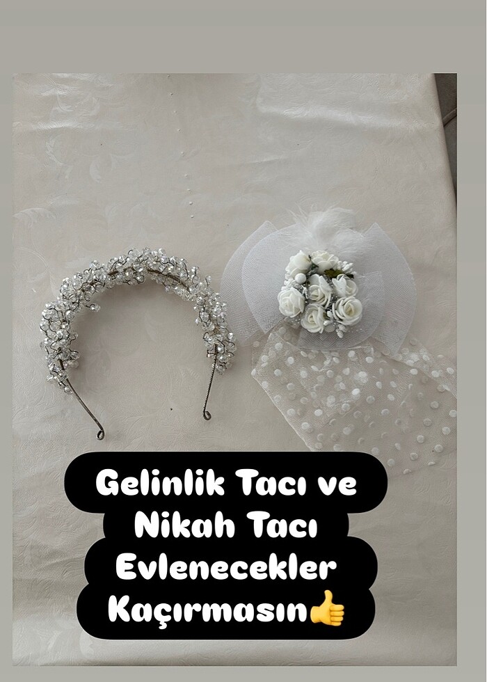 Gelin Tacı Nikah Tacı Birarada veriyorum Gelin tacı kesme orjinal el işlemesi taştır Acılarak dağınık olarak yada resimdeki gibi toplu şık halde de kullanabilirsiniz Gelinlerr düğünü nikahı olacaklar kaçırmasın
