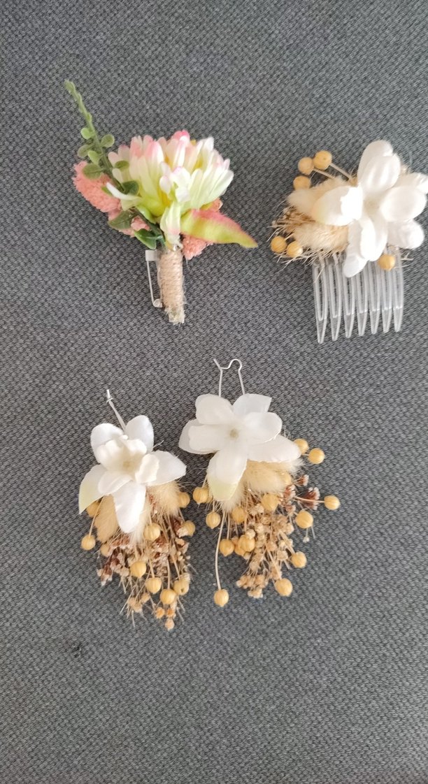 Gelin tokası, küpesi ve damat yaka çiçeği. toka ve küpe kullanilmadi.