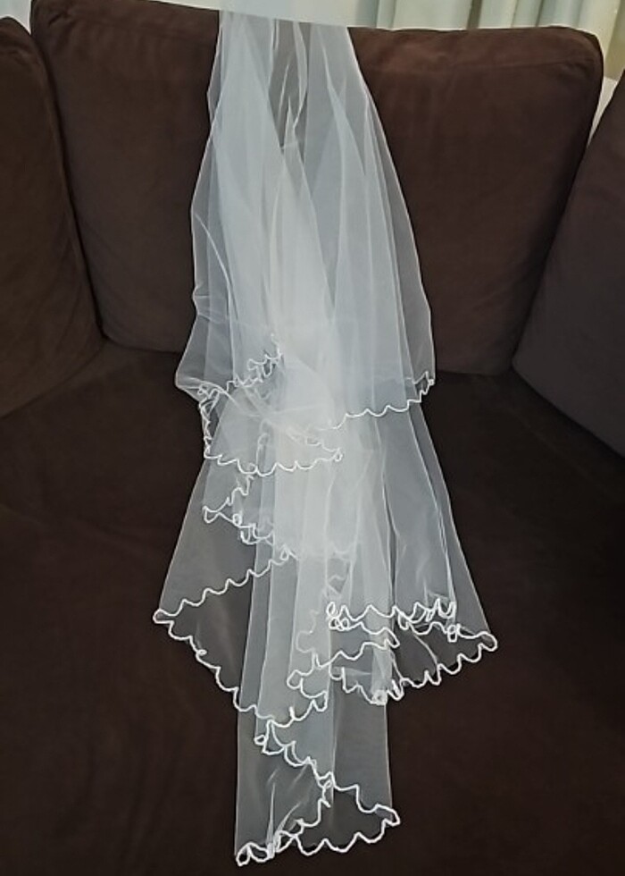 Gelin tül Duvak kısa hiç kullanılmadı kenarları kristal taşlı 2 kat tokasız duvak