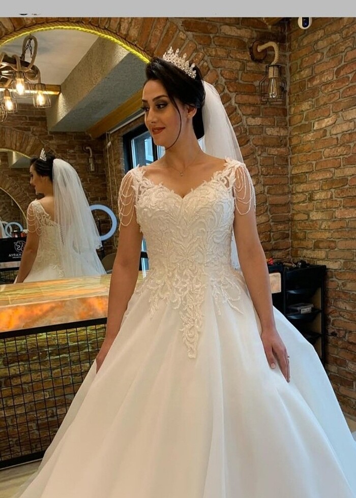 Gelinliğim özel dikimdir her detayını işlemelerini kendim seçtim etekleri karolin kumaştır sade ve zarif bir gelinliktir 1 kere giyilmistir.40 42 bedenlere uygundur