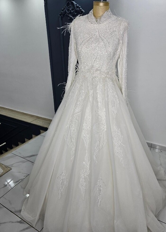 bel omuz ve kolunda tüy detaylı tesettür gelinlik 38 40 beden uyumlu bir sorunu yoktur
