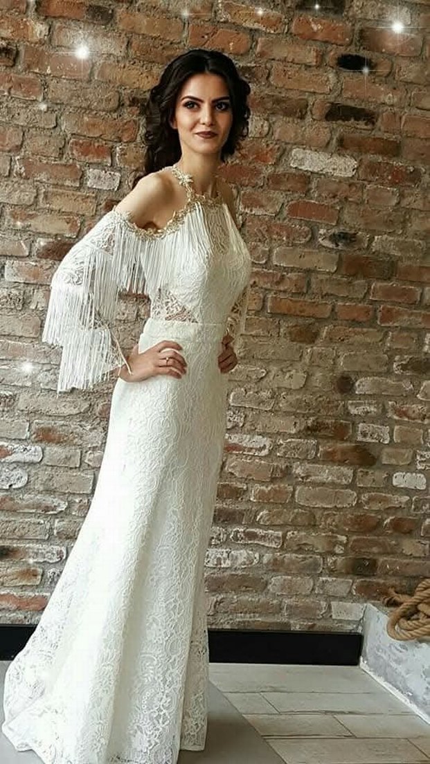 kızlar ben nisanimda giydim 8 yıl önce. Samsun'dan almıştım. kolları hareketli , kendisi komple dantel. biraz sarardı ama bir kuru temizleme ile halledilir yada evde elinizde düzgünce yikayip asarsanizda olur. göğüste kendi kabi var. 34 ve 36 bedene rahatlıkla olur. arkada hafif bir kuyruğu var. detaylar fotolarda mevcut. başka sorular için yorum yapmayı unutmayın. düğününde nisaninda ev çıkışında nikahında giymek isteyen herkesi beklerim. ben çok uygun bir fiyata ekliyorum ihtiyacı olan biri alsın lütfen.