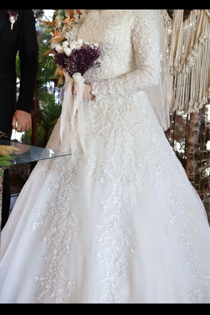 Yurtdışına gittiğim için acil satılık. Bir haftaya satılmazsa komşuya hediye vereceğim. Normal değerinin çok çok altına bırakıyorum. Gelinlik özel dikimdir. Işıl ışıl, zarif, yüksek belli ve arkadan iplidir (genişleyebilir, daralabilir). Tarlatan genişliği ayarlanabilir. Duvağı bel hizasındadır ve üstünde taşlı tacı vardır. Boyum 167 + 11 cm topuklu ayakkabı ve kilom 68. Fiyatı düşürdüm çünkü taşınma sebebiyle acil elden çıkarmak istiyorum. Kuru temizleme vs. isteyen alıcı karşılar. (Not: eteklerinin ucu azıcık kirli yere sürttüğü için)