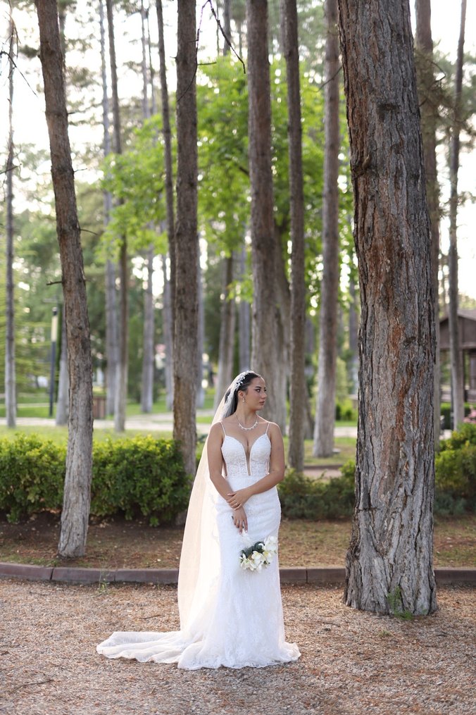 S/M uyumlu gelinlik. Alanın kuru temizlemeye vermesi gerek, sadece nikah ve çekim için giyildi. Ben 1.60 boy ve 60 kiloda giydim fakat arkası ipli olduğu için 50-65 kilo arası herkese olur. Duvak ve taç ile yollayacağım. Ayak 37 numara ise ayakkabı da yollarım