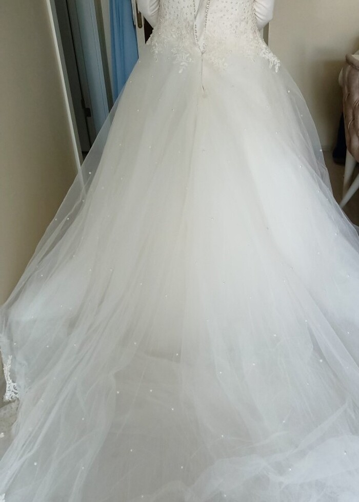 Gelinlik sadece 1 kere giyildi düğün salonunda hiç bir kusuru yok özel dikimdir 38/40 beden aralığında olur taşlı danteli