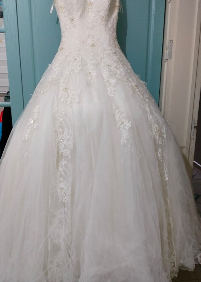 Gelinlik İstanbul Pendik Narin modadan alınmıştır.Ekru gibi tam beyaz değildir.36 ve 38 bedene olur.Ben 57 kilo iken giydim.Dış çekimde biraz kirlendi hafif kuyruğu vardır.Bir uzun birde kısa duvağı vardır.Taç ve keseside dahildir.Fazla kabarık değildir.Tarlatanı vardır.