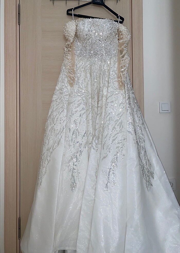 Gelinlik (takım halinde 5 parça) Gelinlik )) Tarlatan (genişletile bilir) veya tam tersi (küçültme) ya pa bilirsiniz 3m duvak baş tarafı aşağı doğru taşlarla süslü Gelin çantası ( taşlarla süslü ve gelinlik ile uyumlu takım halinde olan gelin çantası ( çiçek yerine de kullanıla bilir) bir diğer adı da (gelin altın çantası) Halay mendili taşlarla süslü ve (taşları sağlam sallarken de düşmüyor) boyut olarak tam gelin halay mendili son zamanlarda popüler olan.. Gelinlik ve diğer ürün renkleri kırık beyaz ama tam değil beyaz ile kırık arası.