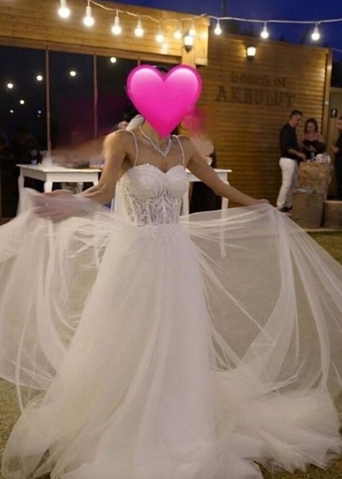 Çok çok iyi durumda özel dikim İpek tülden yapıldı kırık beyazdır. tülü ile bile alınabilir Kuru Temizleme yapılmamıştır pazarlık yapılır
