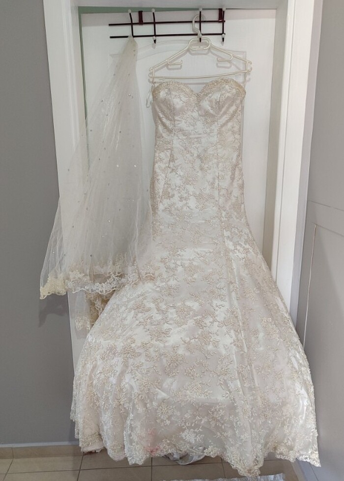 Özel gelinlik SM uyumlu göründüğü gibi tertemiz sağdece etek uçları kuru temizleme istiyor.