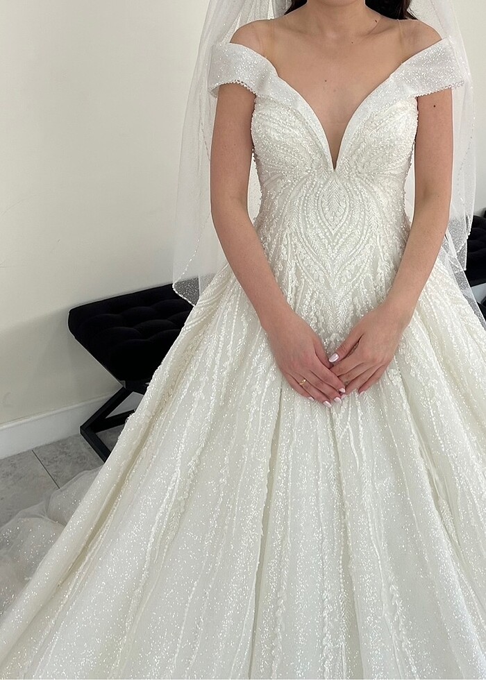 Aysira marka gelinlik 36-38 beden uyumlu 1 kere kullanıldı model özel seridir gayet şık ve ağır bir gelinlik balo model diye geçmektedir hiç bir deforme yoktur duvak ile birlikte verilecektir.