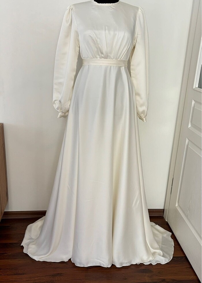 Beyaz kuyruklu tesettür gelinlik Fotoğraf çekimi nikah için uygun sizin ölçülerinize göre uzaktan dikim yapılabilir İstediğiniz model dikilir Kumaşlar değişebilir isteğe göre