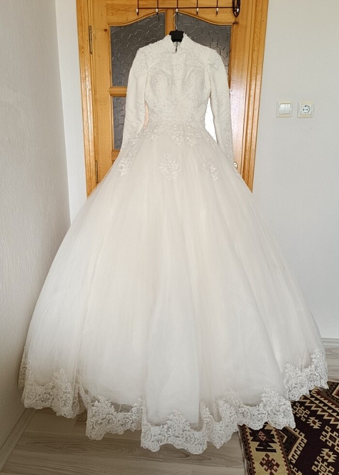 36-38-40 beden arkadan ipli Türban ve duvağıyla birlikte