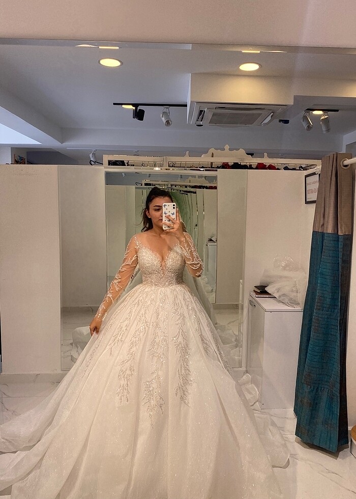 Yasmin Moda Denizli mağazasından satın alındı herkes gelinliğimi çok beğenmişti 2023 yılı Eylül ayında 20bin Tlye almıştık tül kısmında ve kol kısmında bir kaç söküğü var terzi yapılabilecek bir sökük olduğunu söyledi isteyen olursa fotoğraflarını yüklerim ve hiç kuru temizlemeye verilmedi bu yüzden fiyatı makul tutuyorum 165 boy 65-70 kilo iken giyildi arkası ipli olduğu için benim bedenime yakın tüm bedenlere olur yanında tacımı da hediye göndericem