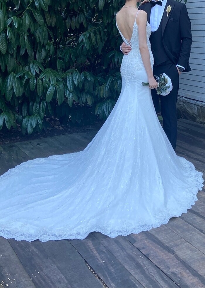 Mart 2024 yılında evlendin , bir heves ile üzerine göre dikilen elbiseyi satın aldım. Ancak şimdi yer olmadığı için satıyorum. Dış çekim görselleri kadar uzun değil kuyruğun arkası, düğünde daha rahat hareket edebilmek için arkadan kestirdim azıcık bilginize. Beden ölçüsü 75-65-85 / 75A