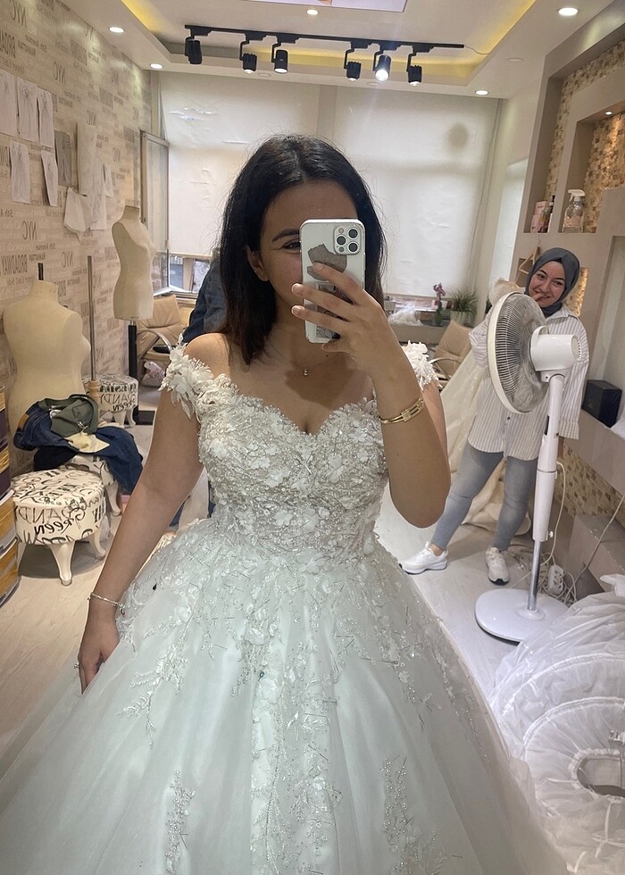 Özel dikim gelinlik kumaşına kadar özel seçimdir üç boyutlu kumaş kullanılmıştır fiyatta pazarlık yapılır
