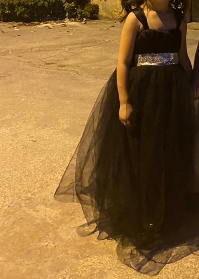 Siyah gelinlik 2 kere giydi . 3 buçuk yaşında . 15 kg tülün önünde hafif bi yırtık var ama belli olmuyo