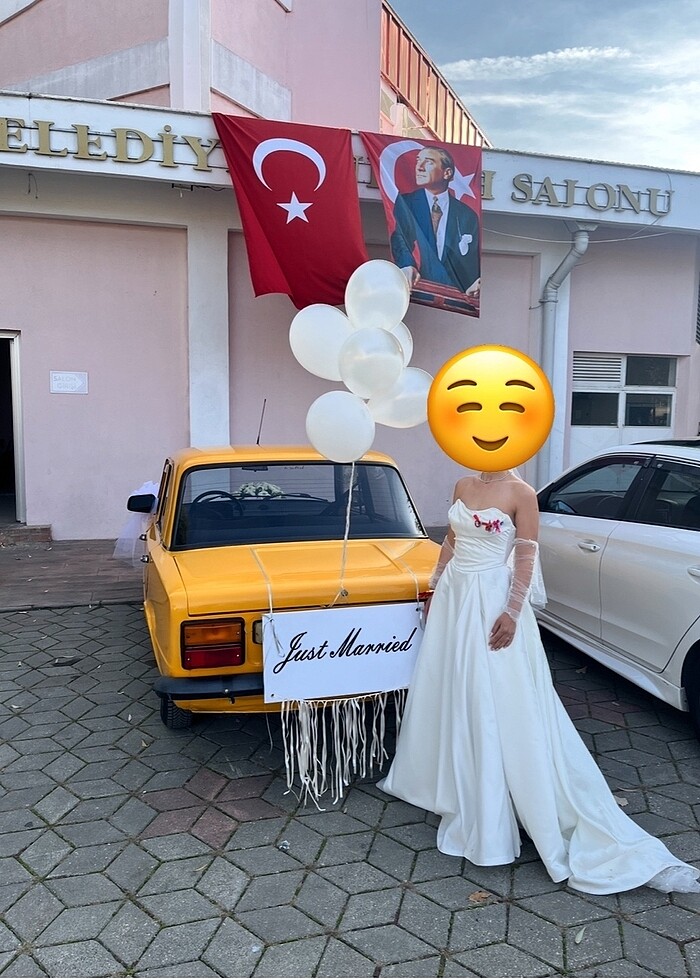 Beyaz saten gelinlik sade incili uzun duvağı ve 2 adet ayrı kolluğu mevcut