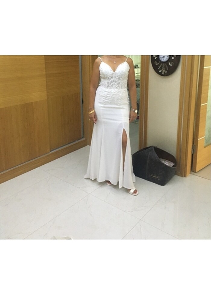 Nikah düğün için bir kez giyildi temiz lekesiz 38/40 beden ithal kırık beyaz çok modern modası geçmez