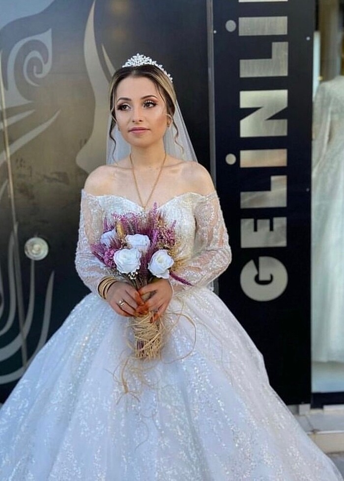 Sadece düğünümde 3-4 saat giyildi hiçbir yerinde bir şey yok yeni gibi