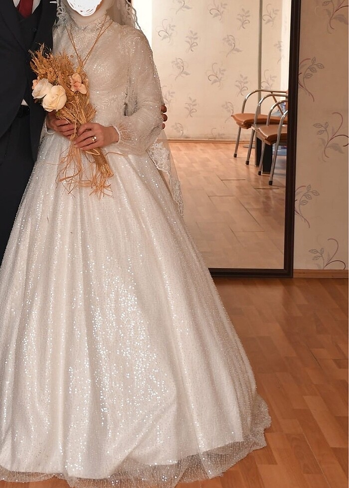 Gelinlik 36 38 beden uyumlu arkası ipli duvakla beraber