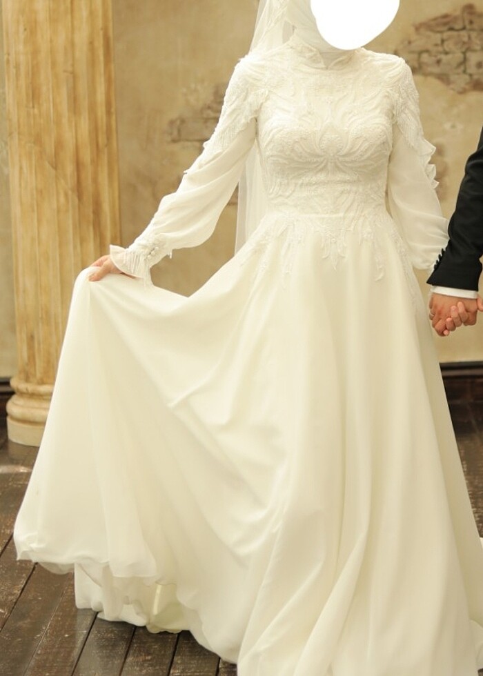 Yağmur, kar, çamur görmedi. Çok temiz. Çok severek almıştım ama saklayacak yerim yok. Duvak falan hepsini vereceğim. 38 bedenim. 170 boy 62 kiloyken giymiştim. Arkasında hem ip hem fermuar hem de düğmeleri var. Çok zarif bir gelinlik. En düşük tarlatanı almıştım. Sade ve çok şık. Aysira markası. Fiyatta anlaşabiliriz. Kocaeli Başiskele