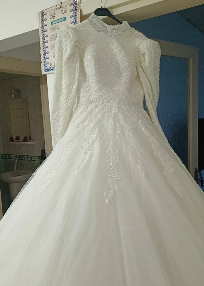 38 40 beden gelinlik arkası bağlamalı kuyruklu arkası