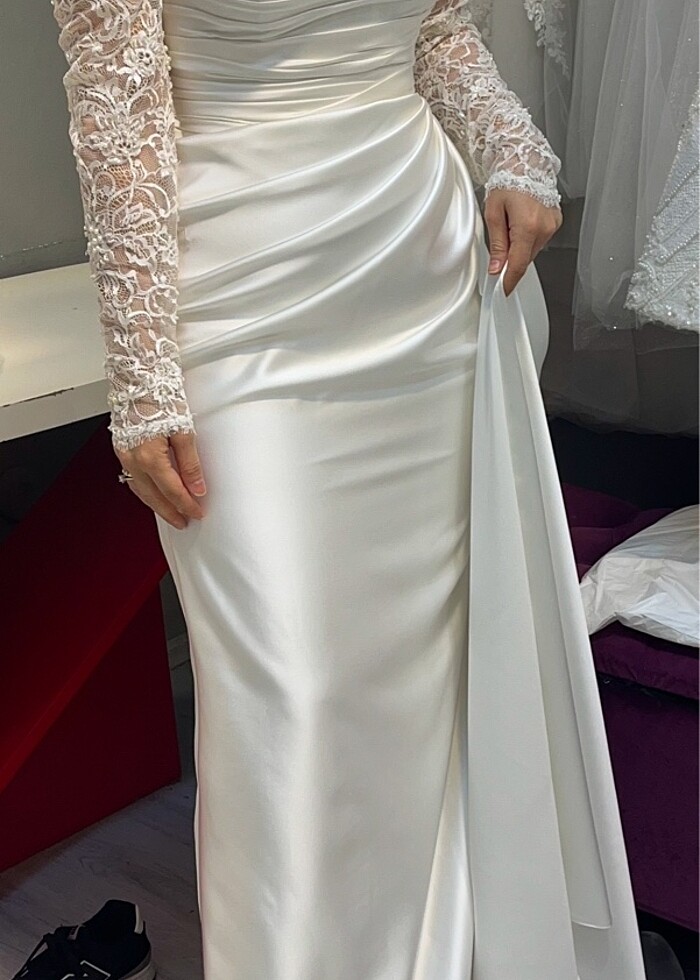 Nikahlık olarak giyildi. 34 beden arkası bağcıklıdır #gelinlik #saten #dantel