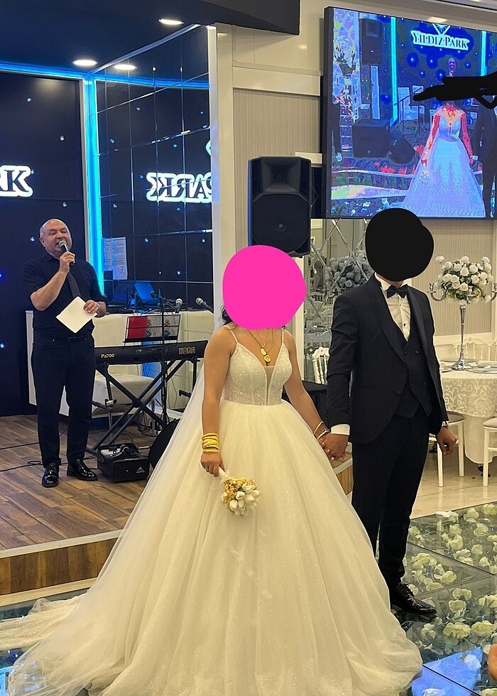Gelinlik özel tasarımdır dikilmiştir simli ve taşlı