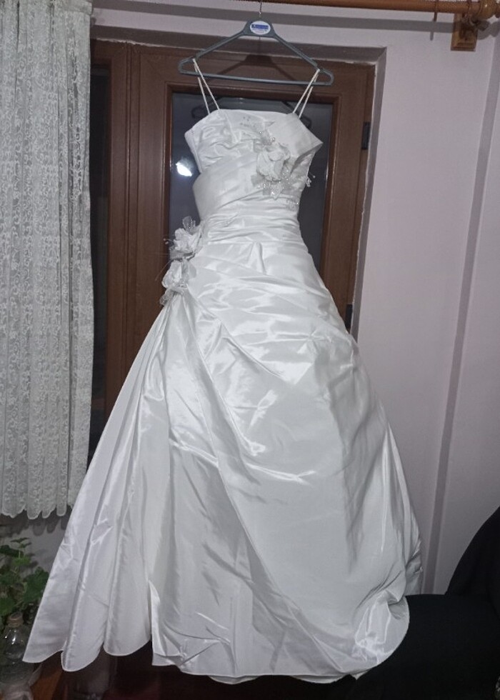 Kardeşimin gelinliği. Satın alınıp 1 kere giyildi. Yırtılma vs yok. Duvakta duruyor. 34 bedene olur. Boyu 1.60 kilosu 45.
