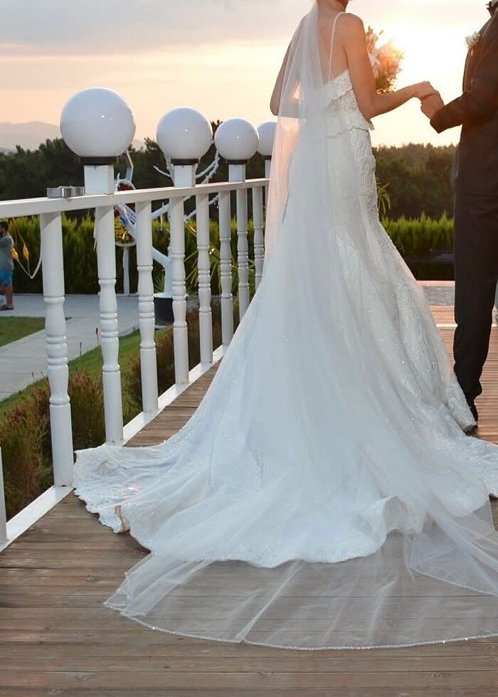 İzmir White house ‘tan almıştım gelinliğimi. İthal olan markaların satıldığı ve gelinliklerin özel tasarım olduğu bir moda evi. Uzun kuyruklu, full kristal taş işlemeli ve ithal kumaşa sahip bir gelinlik ben çok severek diktirdimm ve giydim (Boy 1.78 , kilo 58)