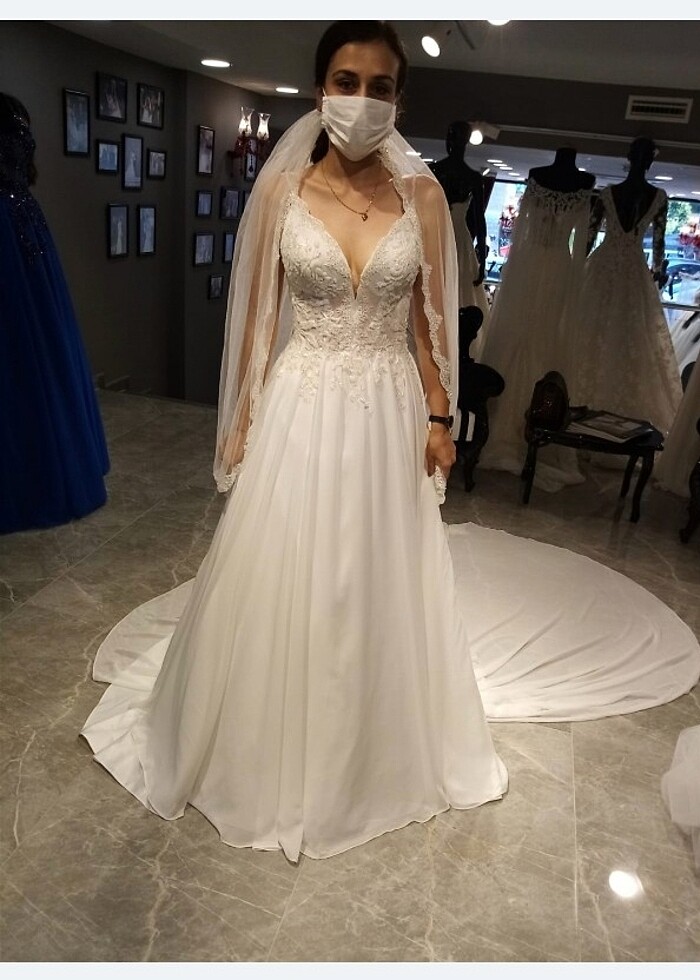 Gelinliğim 36-38 bedene uygun. 2 farklı modeli bir araya getirip yaptırdık. kuyruğu uzatıp kısaltabiliyorsunuz. 1 uzun 1 kısa duvağı var. Tarlatanı var. Kuru temizleme yapılmadı.