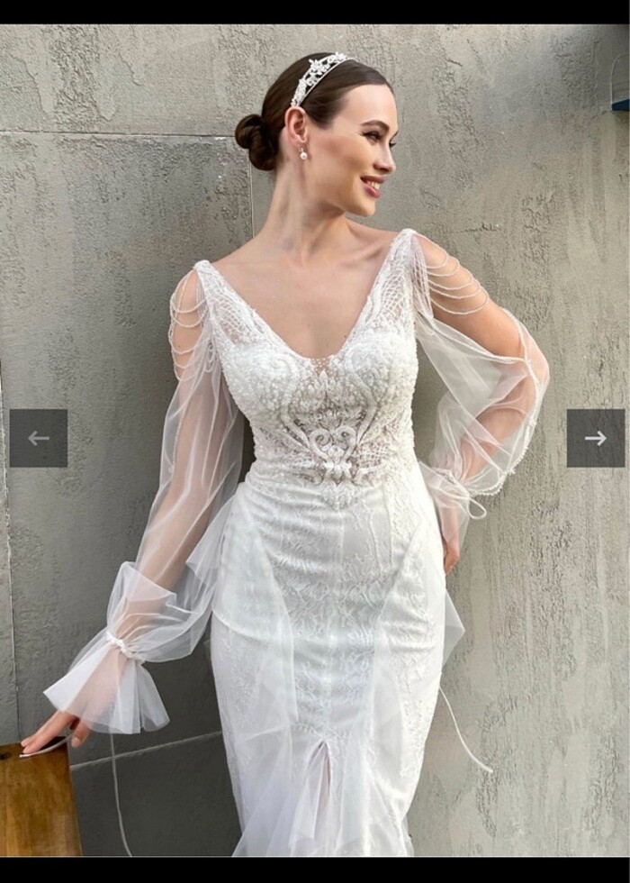36-38 beden uyumludur. Ön yırtmaçlı kolları ve kolundaki boncuk detayı çıtçıtlı isteğe bağlı çıkarılabilir. Ben severek giydim. Kuru temizleme yapılmadı.