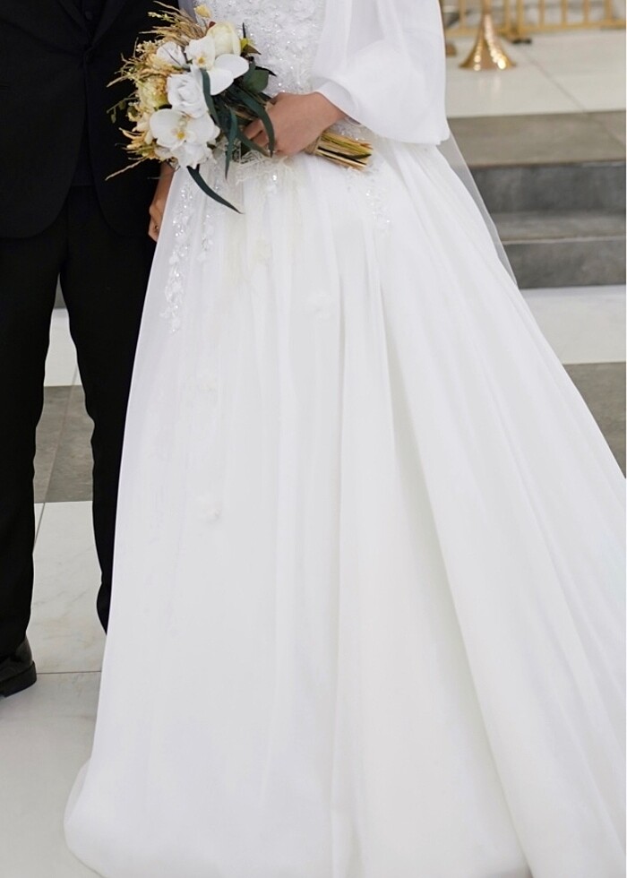 Güzel gelinlik sadece yakası biraz açık isteyen yaptırabilir temiz hiç bir sorunu yoktur sadece yapışkanlı var kuru temizlemede çıkar markası pierre cardin