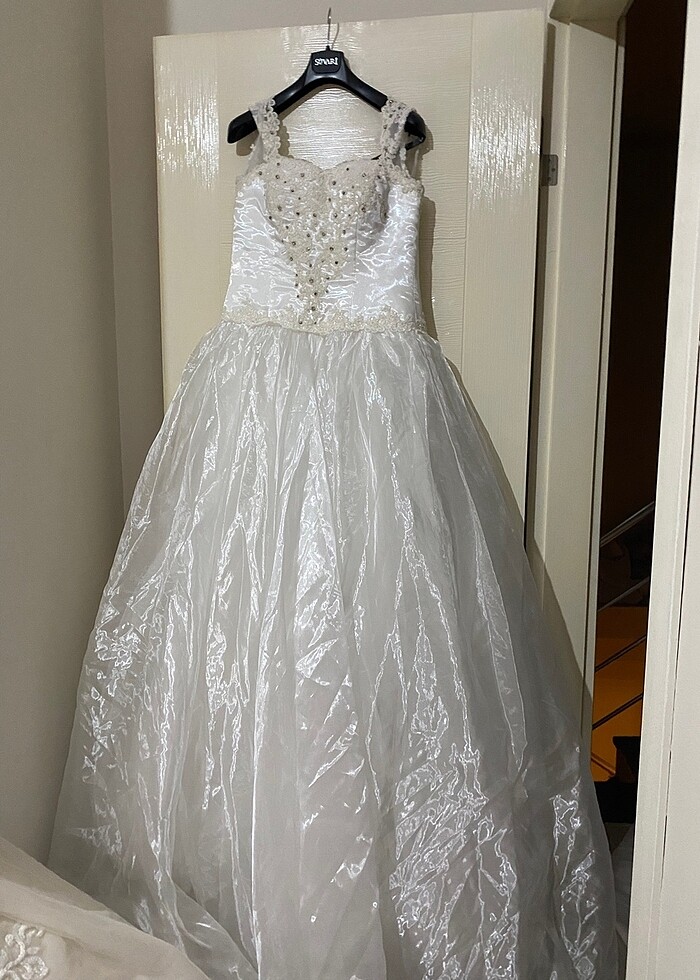 Ürün bir kez giyildi ,tüller biraz kırışmış ve içinde küçük bir sökük var ama giyilmeye engel değil fotoğraflara ekledim Kayseri içi görebilir İade yoktur